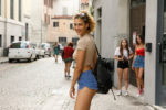 I gotta be honest. I experienced a moment of terror during this photo session. It wasn’t when Sylvia Belotti and I were kicked out of a hotel’s lobby, of which we were not even guests. It wasn’t when Sylvia saw her father’s car drive by as she did the splits in her impossibly short denim cut-offs. It was when this woman with the energy of a wildling decided she would jump off a dangerously high platform onto unforgiving concrete … just cuz. I was certain I would witness a bodily injury. But no, Sylvia continues to impress.